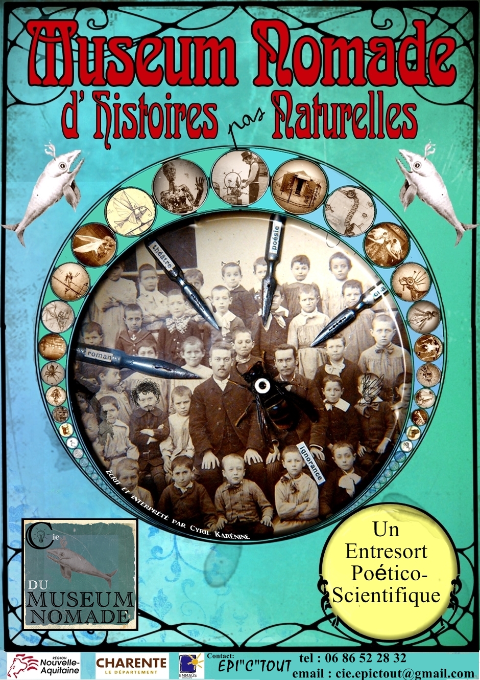 Le Muséum Nomade d 'Histoires pas Naturelles plonge le spectateur dans une bulle hors du temps, ou le mystère et l’étonnement font rapidement place aux sourires et aux rires. Ce Muséum avec ses 24m² est probablement le plus petit Muséum du monde mais il a pour grande ambition d'enseigner aux enfants de 3 à 99 ans que la curiosité n'est pas un vilain défaut, que la folie peut être douce, le voyage immobile, et la vie, un rêve!